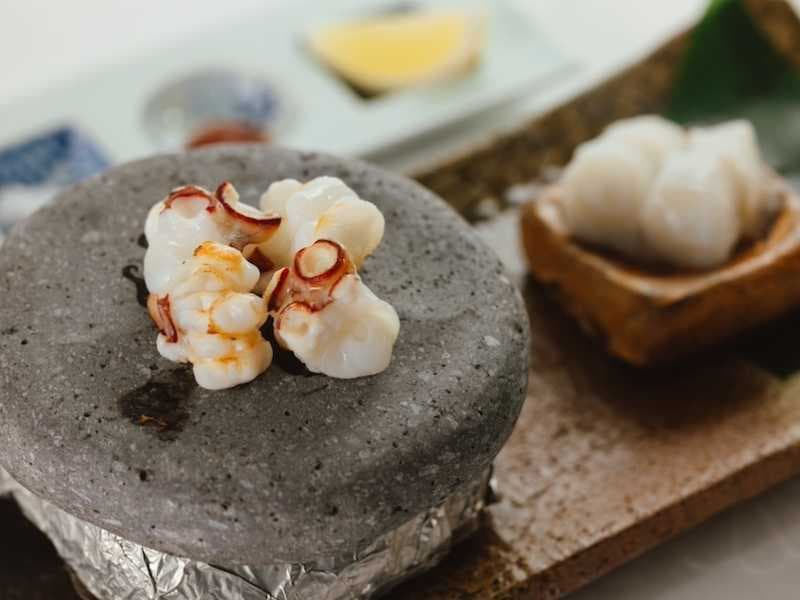 焼物 | タコの石焼き 梅肉だれ レモン 天然塩 |