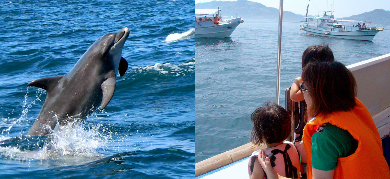 漁船に乗って野生のイルカに会いに行く、イルカウォッチングが楽しめます。日本近海では天草のように、イルカが定住しているところはほとんどありません!!