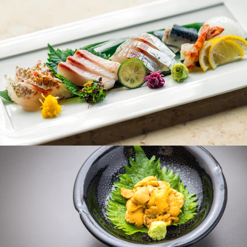 漁師の島・天草が誇るお造りの盛り合わせとウニが楽しめるプランです