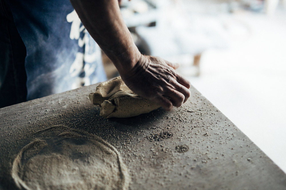 あえて鉄分の多い陶石を使ったり、さらに砂を混ぜたり…。