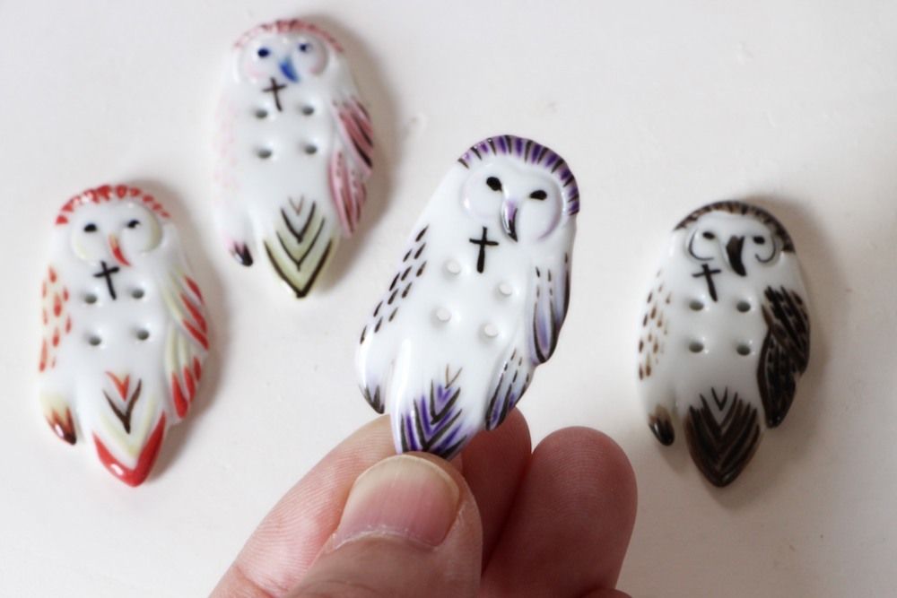 天草陶石でつくる磁器ボタン「天草ボタン」。