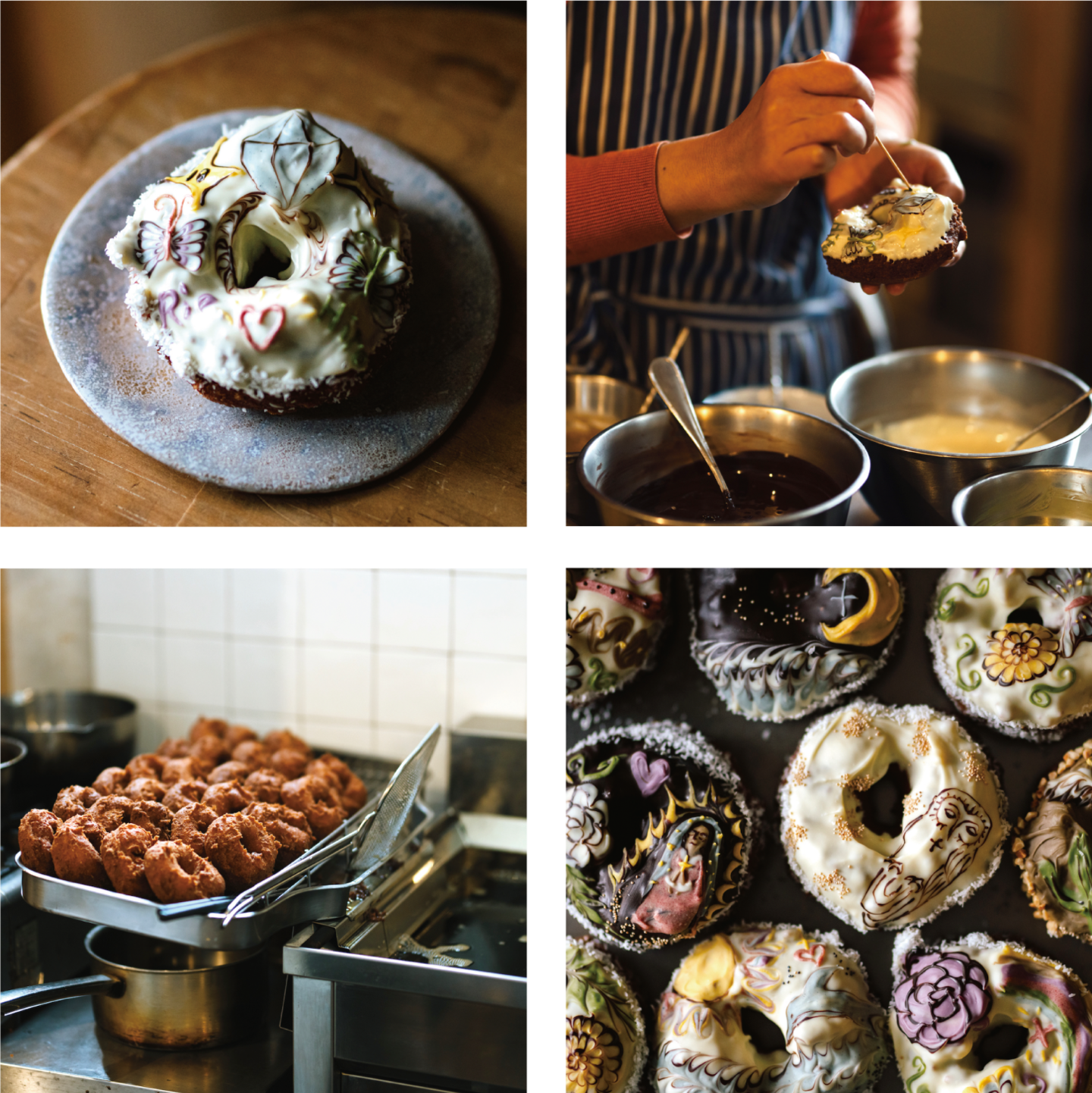 ◎写真上右 / おから、米ぬか、素焚糖など厳選した素材で配合や混ぜ方など長年改良を続けながら手作り。自家製植物性酵素が細胞に良い情報を与えてくれる「おいしくてカラダが元気になるドーナツ」です