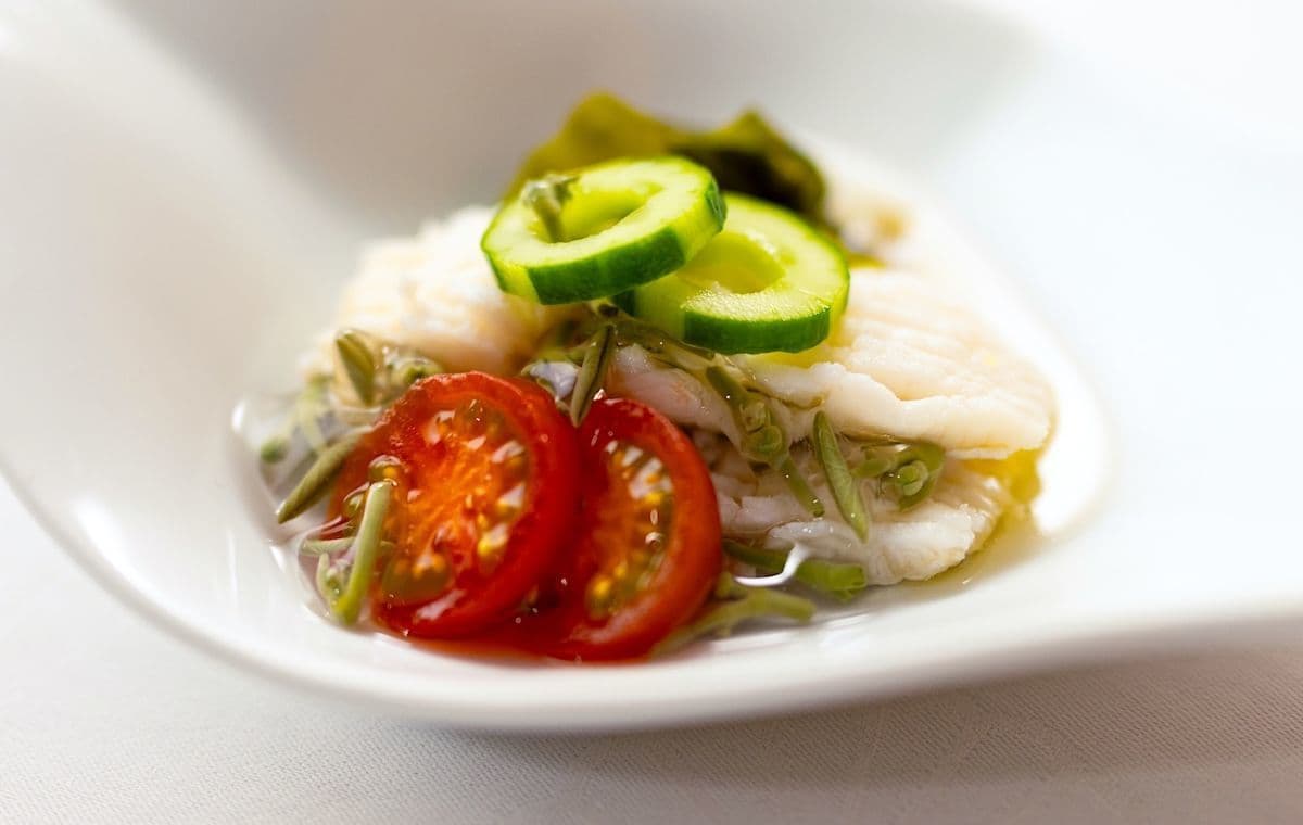 前菜 | ハモ落とし 順才 トマト 若芽 キュウリ |