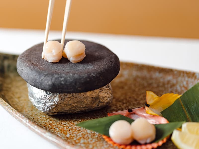 アツアツの溶岩石で軽くあぶってお召上がりください。
