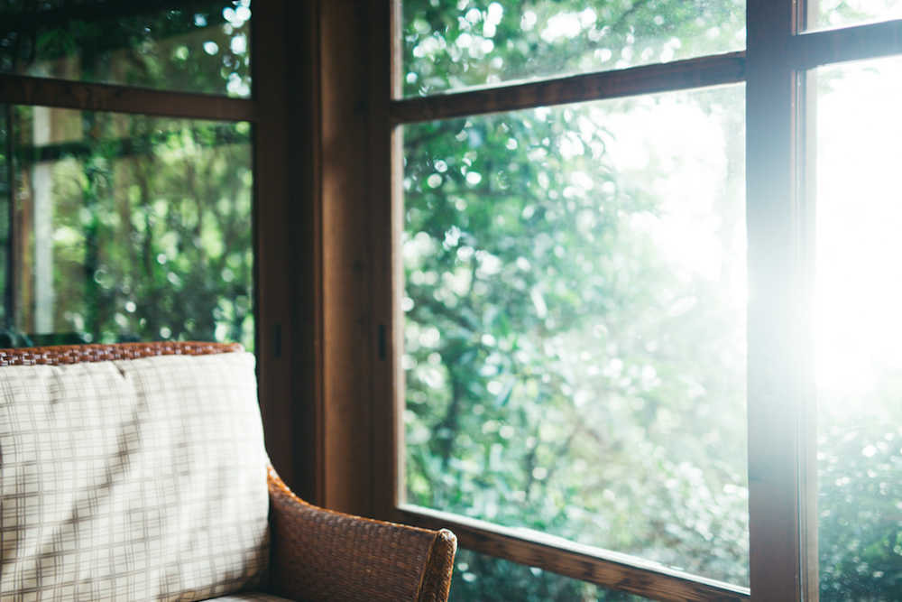 リビングルームからも東シナ海が見えます。寝室は和の情緒いっぱいの和室にお布団を敷いて…。きっといい夢がみられることでしょう。