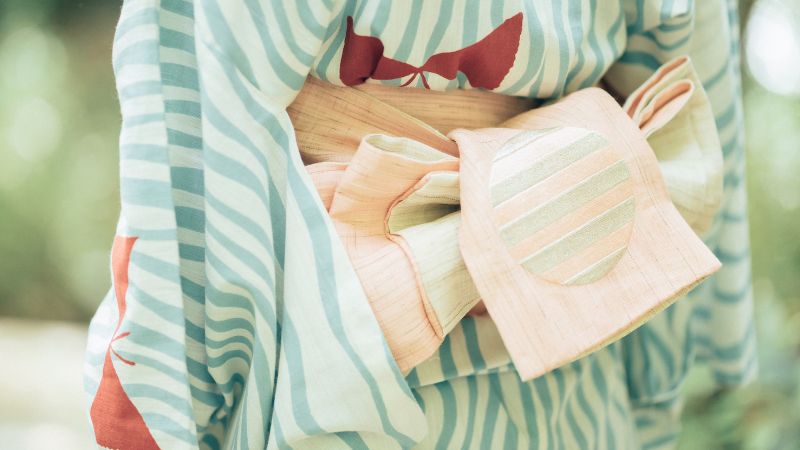 帯は麻きびら。落ち着いたピンクを選び、全体を柔らかく仕上げてみました。