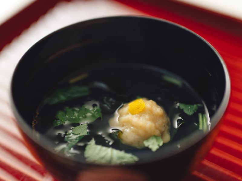 | 椀物 | 牡蠣真薯 若芽 三つ葉 柚子 |